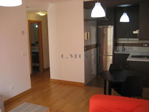 Bonito apartamento de un dormitorio, amueblado, con plaza de garaje en el mismo edificio. Muy bien situado en la calle Zaragoza muy cerca de POVISA. Luminoso y tranquilo. Construcción reciente. No se admiten mascotas.